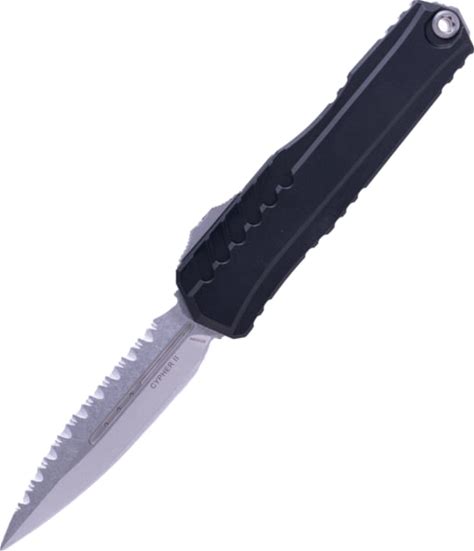 Microtech Cypher II D/E Full Serrated 3.55in Folsing Knife Black Stonewash 1242-12