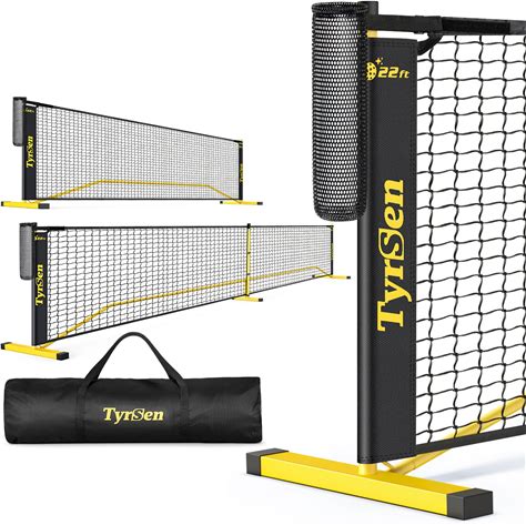 TYRSEN Portable Pickleball Net For Driveway, 22 ft Regulation Size & 11 ft Half Court Size Pickle Ball Net With Ball Collector, 2-In-1 Pickle Ball Net