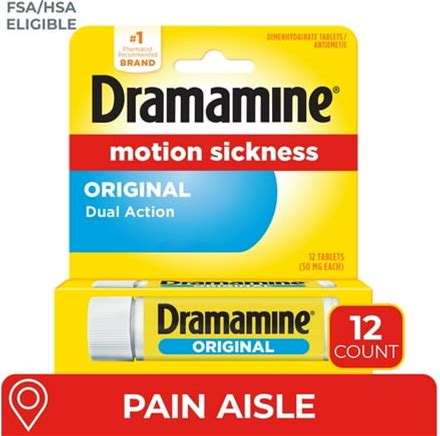 Dramamine Original, Motion Sickness Relief, Sensitive Stomach Travel Vial, 12 Count