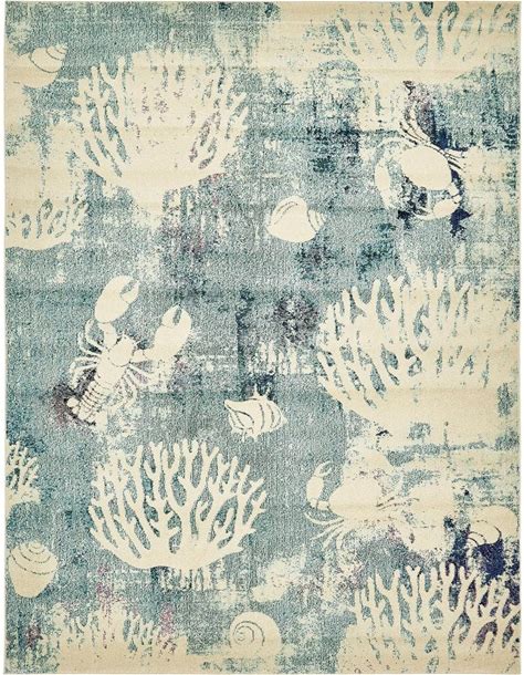 Coastal Beach Rug: Seashell, Starfish & Coral Pattern - Etsy