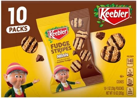 Keebler Fudge Stripes Minis, Original Shortbread Cookies Coated In Keebler Fudge, 10 Oz, 10 Count