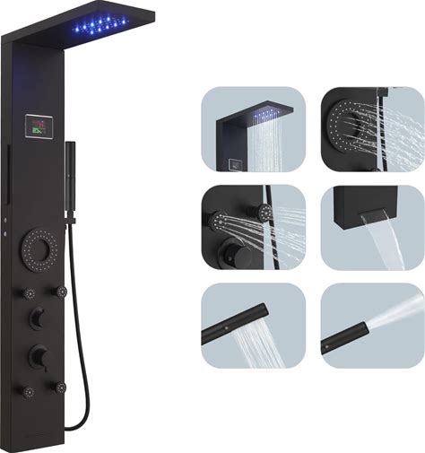 LED Rainfall Shower Tower System Stainless Steel 6 Body Jets Black - Black - 2-In-1 Body Jets