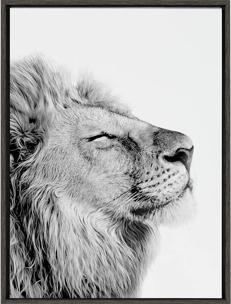 Kate And Laurel Sylvie Self Actualizing Lion Print Black And White Portrait Framed Canvas Wall Art By Amy Peterson, 23X33 Dark Grey