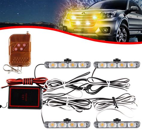 Kaidengzhe 4X4 LED 4 in 1 Surface Mount Grill Light DC12V Wireless Remote Emergency Flashing Beacon Lamp Ambulance Police Strobe Warning External