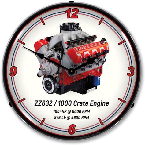 14" Zz632 Gm Chevy Crate Engine Retro Backlit Garage Clock Lexan Lens